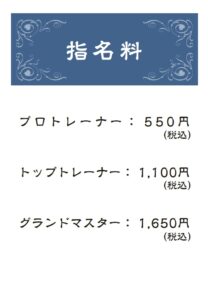 続きを読む2021年4月1日(木)より指名料制度を導入することとなりました。 これは施術料金の他に指名料金を追加することにより希望のスタッフの施術を受けられる制度です。 指名料金はスタッフのランクによって異なります。(550円~) […]